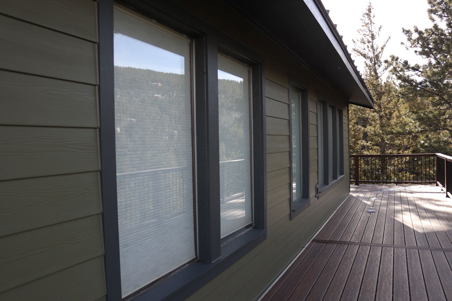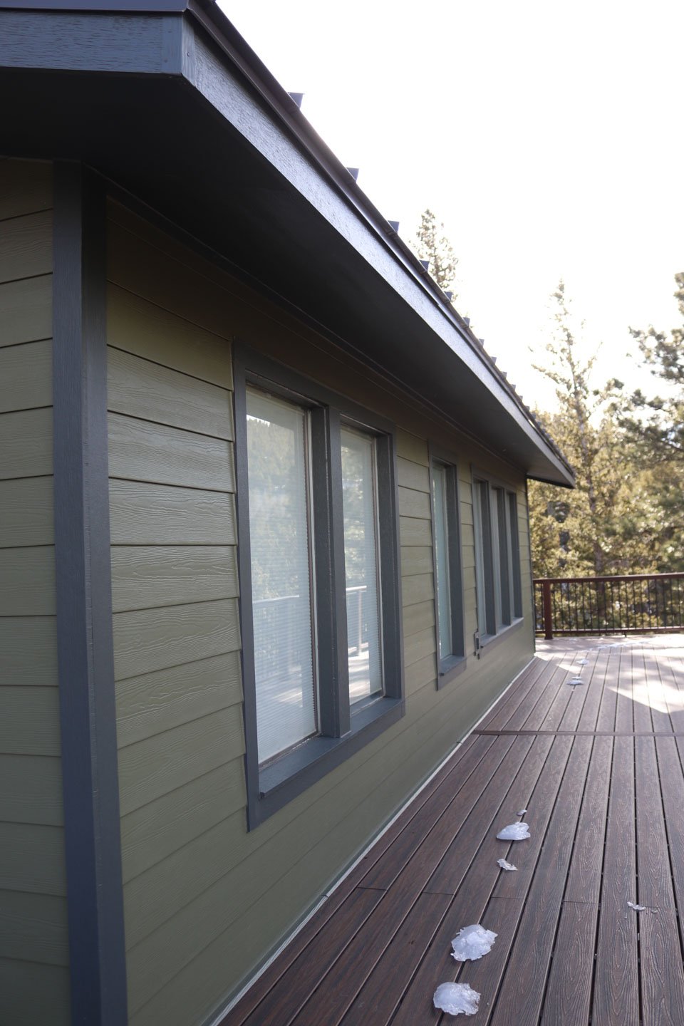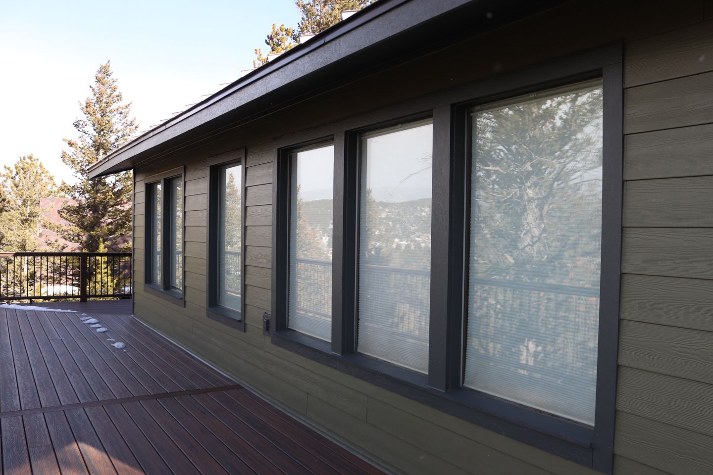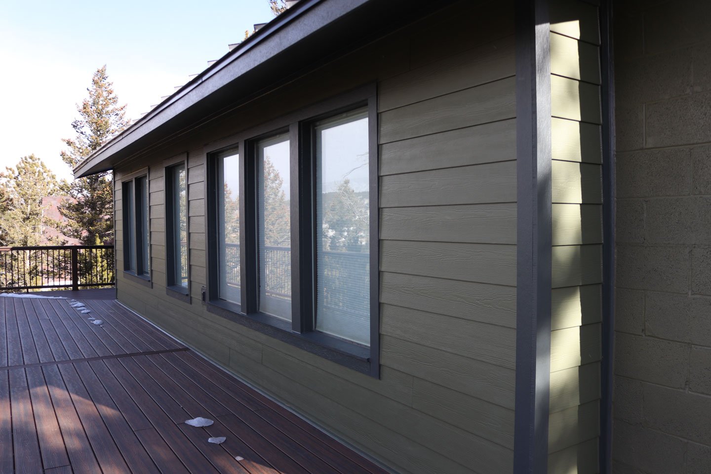 We used Hover 3D modeling to map out the redesign and provide visual clarity on siding and window placement. Our team removed the deteriorating original siding and installed James Hardie lap siding in Mountain Sage, accented with Iron Gray trim for a clean, mountain-inspired look.