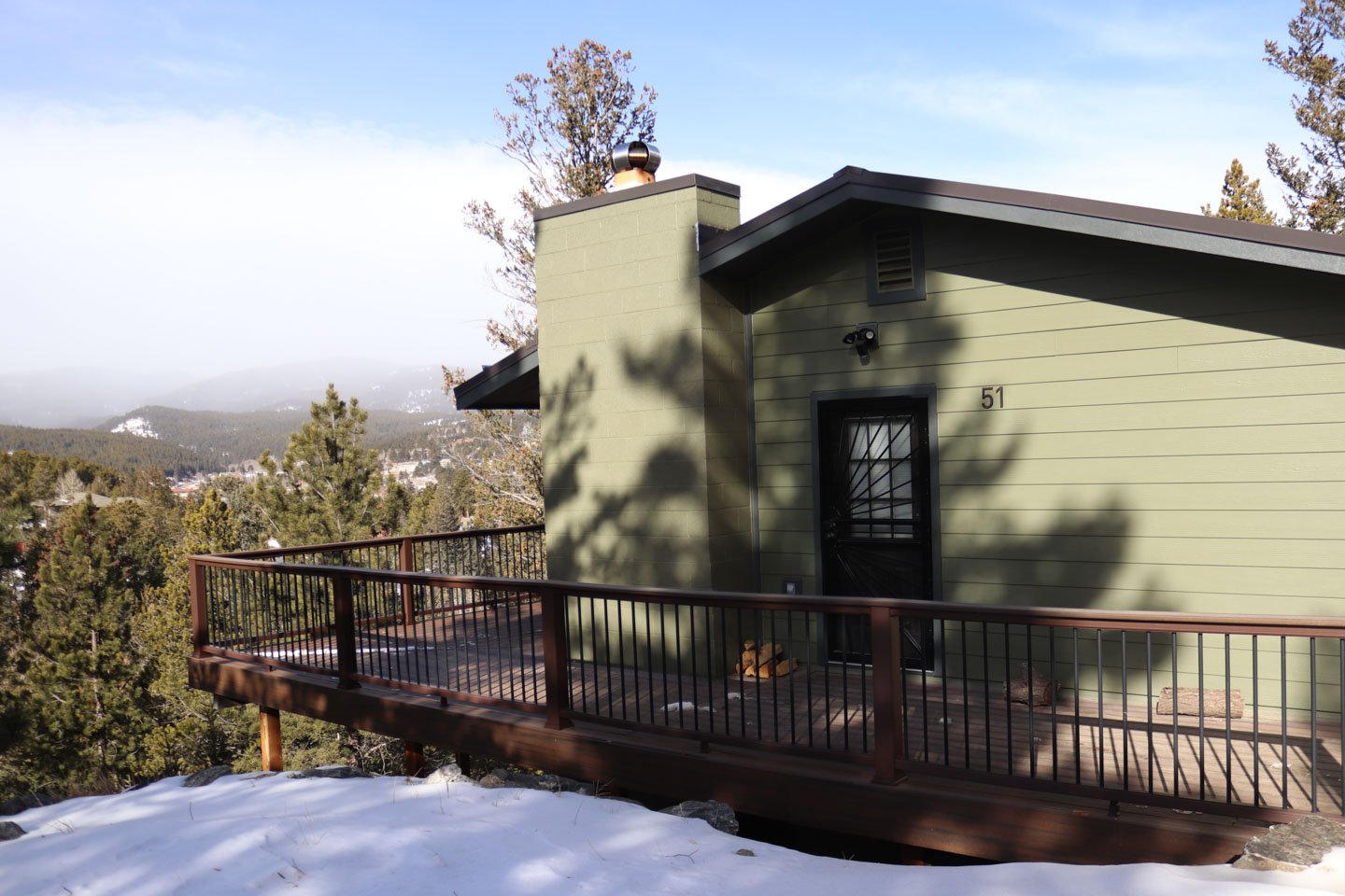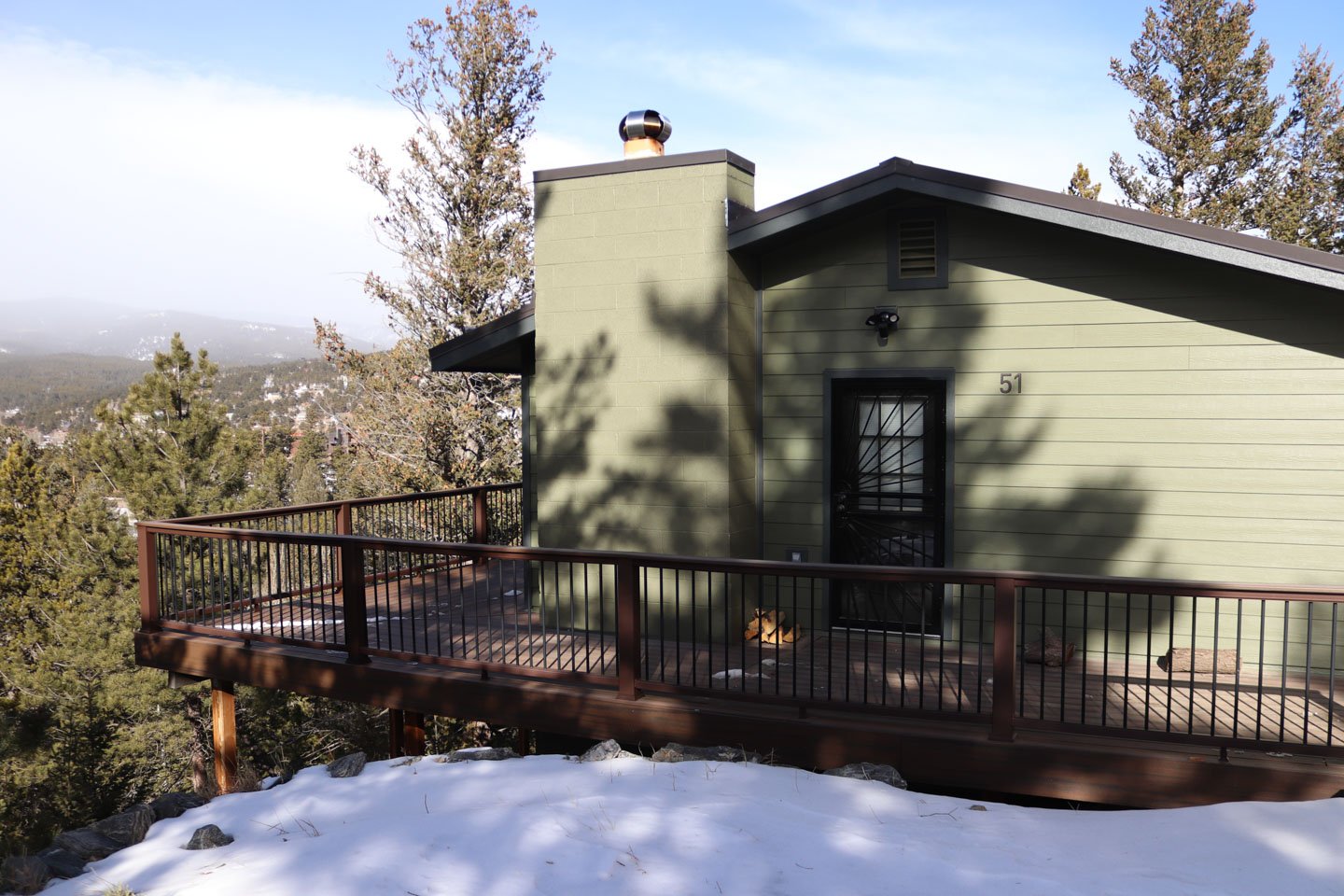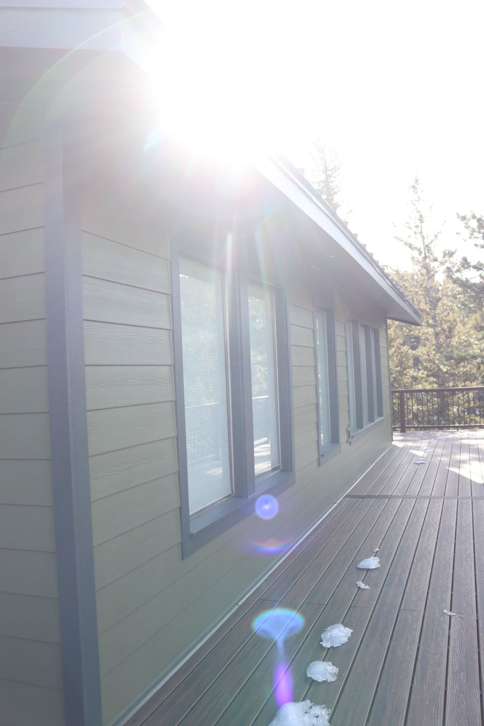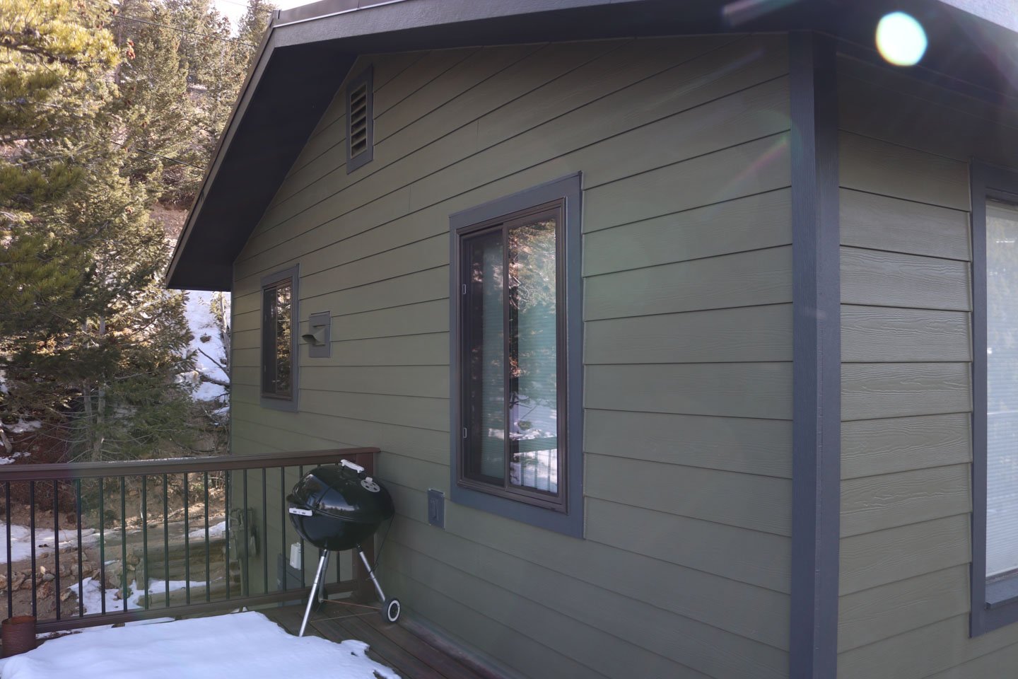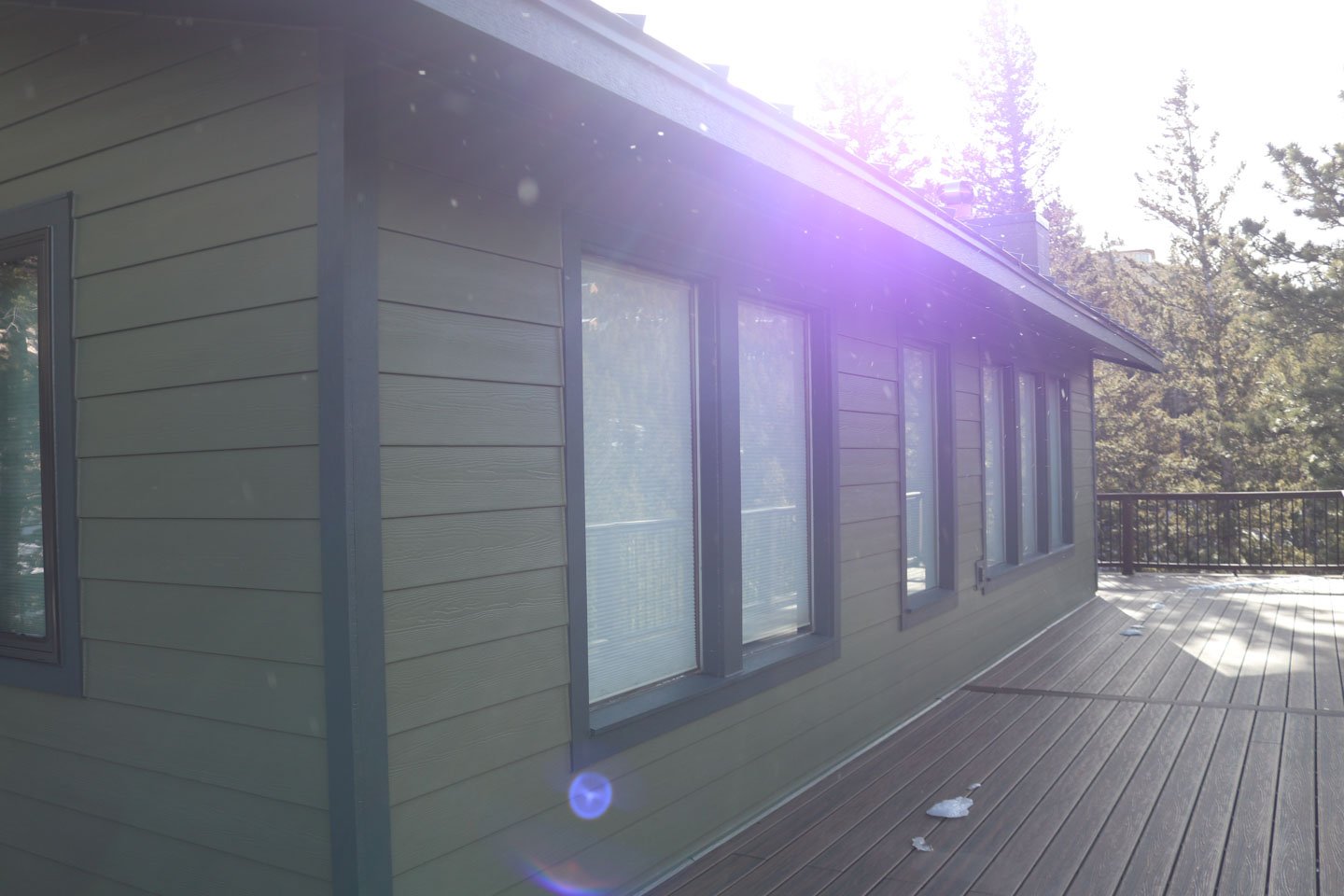 Kip and Donna were facing multiple exterior issues: delaminating plywood siding, original drafty windows, and weather exposure that was slowly degrading their home’s structure. The remote mountain location also made access difficult, and to add complexity, we needed to coordinate our work with a separate contractor installing a new metal roof at the same time.